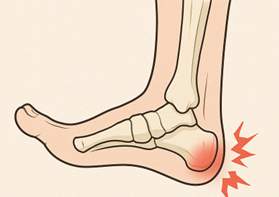 - かかとの後ろの痛み(特に上向きに足首を曲げたときに痛む)・腫れ・熱感