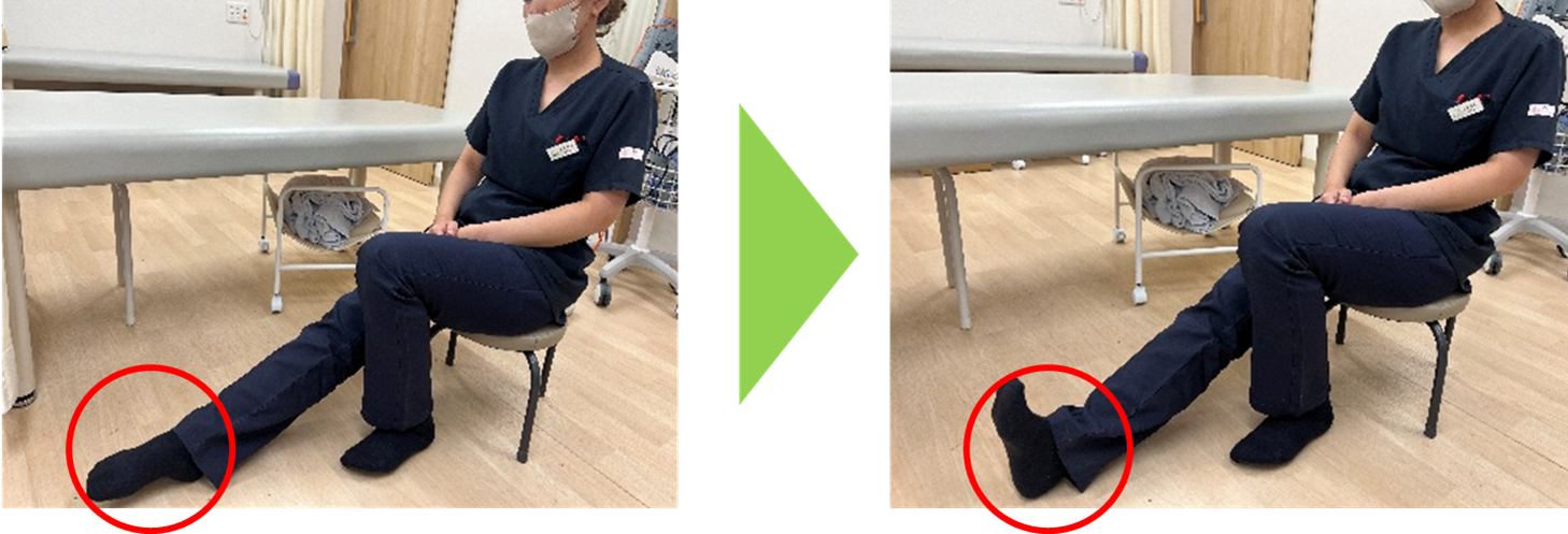 2足首を反らせ、つま先を上げ下げの動作をゆっくり繰り返す。
