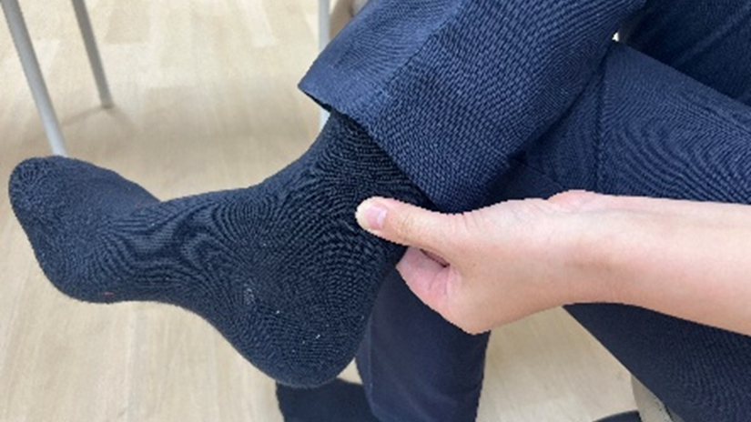 (写真のように、マッサージする足首を自分の手で持ちやすくします。)